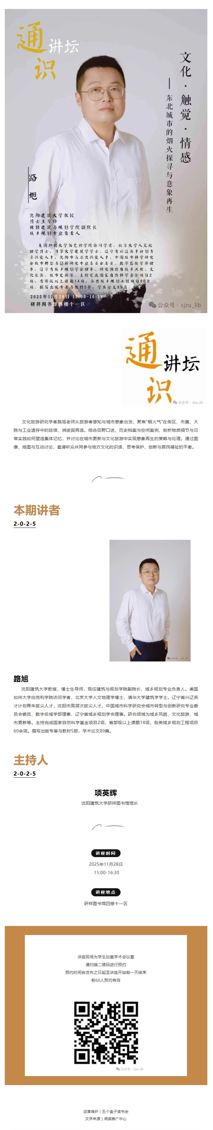 研祥图书馆阅读推广|“通识讲坛” 文化•触觉•情感——东北城市的烟火探寻与意象再生