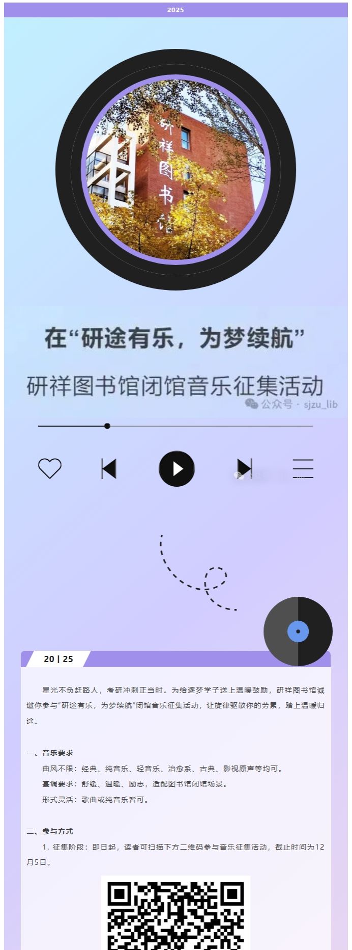 “研途有乐,为梦续航”——研祥图书馆闭馆音乐征集活动