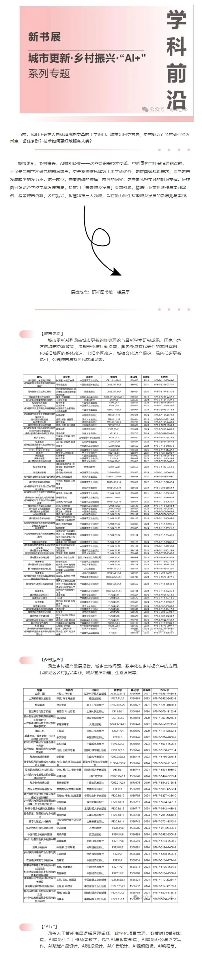 学科前沿新书展【城市更新·乡村振兴·“AI+”系列专题】