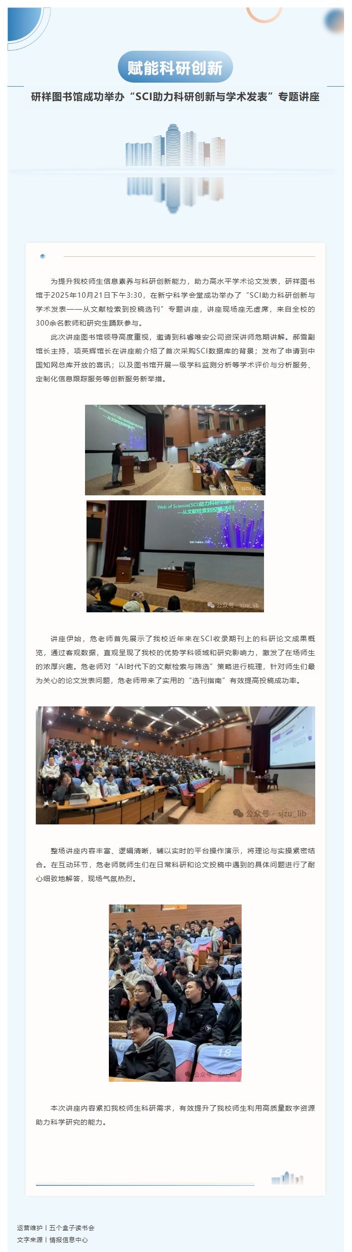 赋能科研创新:研祥图书馆成功举办“SCI助力科研创新与学术发表”专题讲座