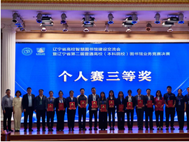 近日,由辽宁省图书馆学会、辽宁省高等学校图书情报工作委员会主办的辽宁省第二届普通高校(本科院校)图书馆业务竞赛(决赛)完美收官。研祥图书馆馆员王佳鑫老师荣获个人赛三等奖。