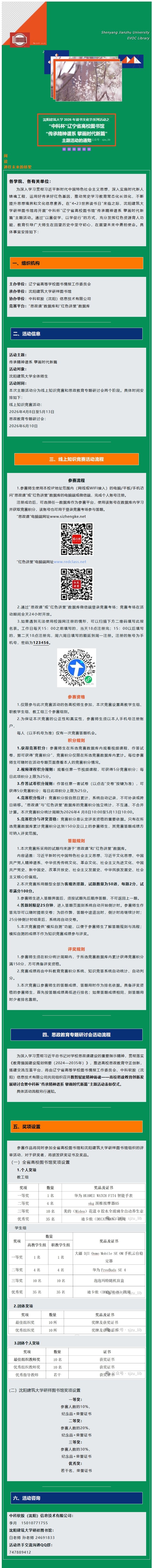 沈阳建筑大学2026年读书文化节系列活动之“中科杯”辽宁省高校图书馆“传承精神谱系 擘画时代新篇”主题活动的通知